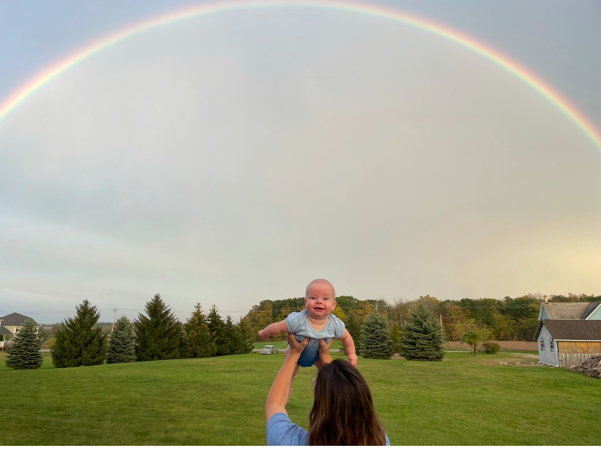 There are many mixed reviews on the term “rainbow baby”. A rainbow baby is a baby born after a loss. I was part of a loss group that met monthly shortly after Brady died, I was only able to attend twice before the C word happened and the world shut down. In that group, a lot of moms didn’t like the term rainbow baby because they never wanted to label the baby they lost as a storm. I get this, it’s a super touchy subject and we all must grieve our way. I happen to love the term, and I am forever grateful for my rainbow just like they are forever grateful for the babies they had after loss. No matter if you like the term or not, there is something seriously special about a baby born after loss. That first smile, baby belly laugh, mama or dada hit differently and literally make your heart burst with happiness and cry tears of joy while you may secretly cry tears of sadness for what was lost when everyone goes to bed or when you’re alone in the car or shower.